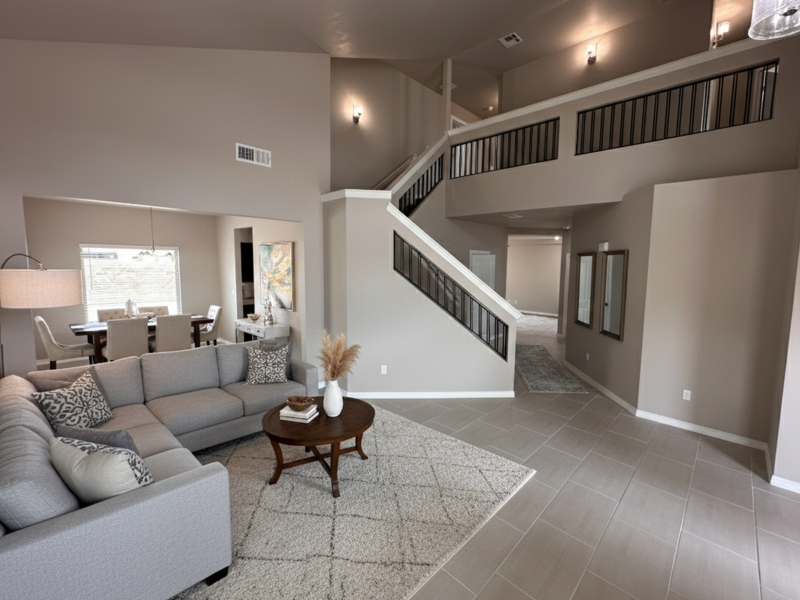 Welcome to 5012 Alyssa Jade in Tres Sueños The Zoey floorplan offers an impressive 2,513 sq. ft. of versatile living space with 4 bedrooms and 2.5 bathrooms, perfectly designed for comfort and entertainment. Step inside to find two spacious living areas on the main floor—a formal living room at the entry and a bright family room flowing seamlessly into the modern kitchen and dining area. Upstairs, enjoy a dedicated media room, ideal for movie nights or a cozy retreat. The private master suite features a relaxing sitting area, an expansive walk-in closet, and a luxurious bath with a double vanity and large shower.